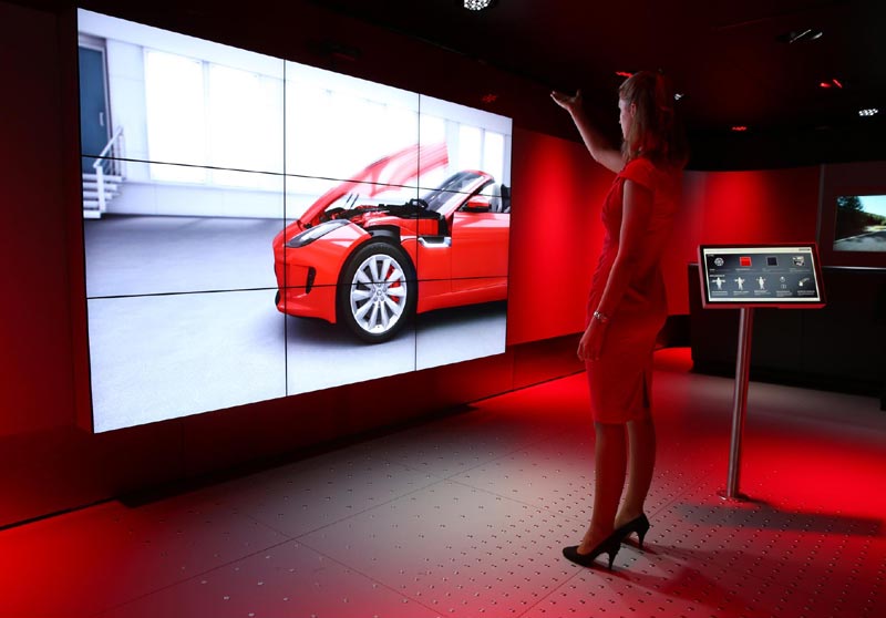 Попав в виртуальный шоу-рум Virtual Experience, клиент (потенциальный покупатель) может выбрать понравившийся ему автомобиль из представленной линейки Jaguar и/или Land Rover. Причем, не только тот, что представлен в цифровом изображении, а любую другую модификацию и комплектации, имеющуюся в продаже. Для этого ему понадобится сенсорная панель, которая выведет на экран машину в нужной комплектации.