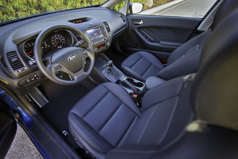 В базовой комплектации Kia Cerato используются 15-дюймовые покрышки 195/65. В качестве дополнительной опции предлагаются также легкосплавные колеса диаметром 16 дюймов с шинами типоразмером 205/55 или диаметром 17 дюймов с шинами 215/45. Развлекать водителя и пассажиров в долгих и скучных поездках предназначена бортовая мультимедийная установка UVO, которую можно дооборудовать навигатором.