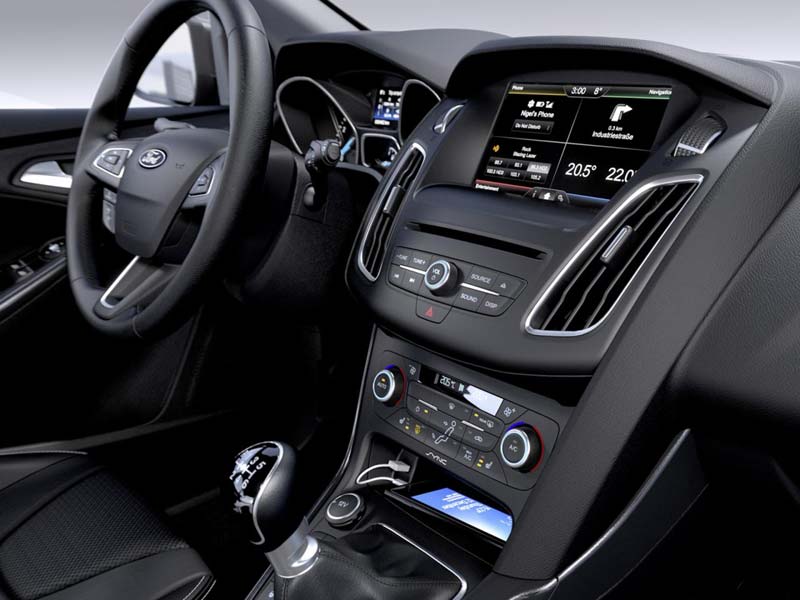 Собственно, основные изменения в дизайне обновленного Ford Focus касаются его передней панели. Это и решетка радиатора, похожая на ту, что обычно «носят» автомобили Aston Martin, и головная оптика, и бампер с противотуманными фарами. Немного также изменилась форма задних фонарей и заднего бампера. В салоне прежде всего на себя обращает внимание новая центральная консоль – по форме похожа на старую, по содержанию совершенно другая. Дисплей стал больше, кнопок – значительно меньше. По мнению разработчиков, такая расстановка позволила повысить эргономику водительского места при той же функциональности.