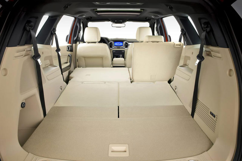 В салоне Ford Everest 2015, рассчитанном на семь человек, насчитывается до 30 мест, где можно хранить различные вещи, общим объемом 48 литров. Что касается багажника, его объем может быть доведен до 2010 литров (когда опущены спинки среднего и заднего рядов)