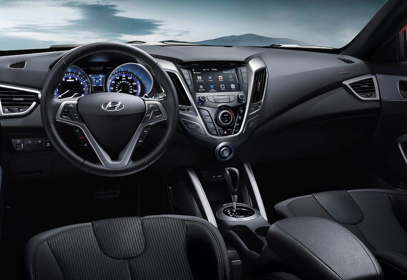 Что касается Hyundai Veloster Turbo, эта версия оснащается турбированным двигателем объемом 1,6 литра мощностью 186 л.с. и 7-и ступенчатой роботизированной трансмиссией с двумя сцеплениями (7-DCT). Данная версия отличается от стандартной наличием агрессивного аэродинамического обвеса, иным дизайном выхлопных патрубков и легкосплавных дисков, а также двухцветными спортивными сиденьями и новой приборной панелью.
