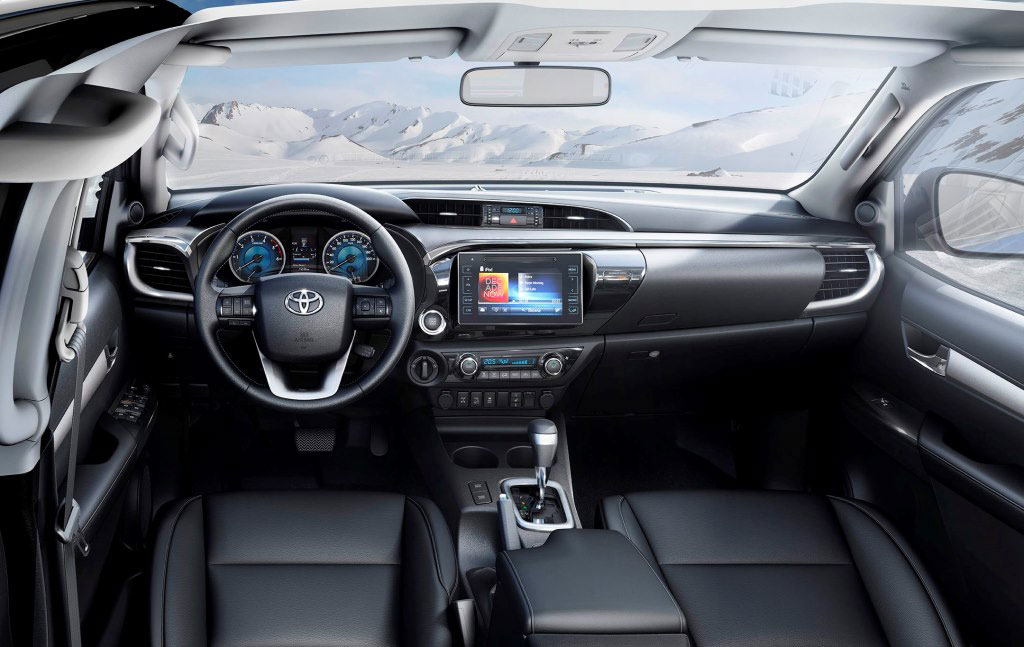 В топовой версии «Престиж» (стартует от 2 077 000 рублей) пикап Тойота Хайлюкс 2016 оснащается системой помощи при спуске со склона, электроприводом передних сидений, светодиодными дневными ходовыми огнями, автоматическим климат-контролем, задним парктроником.