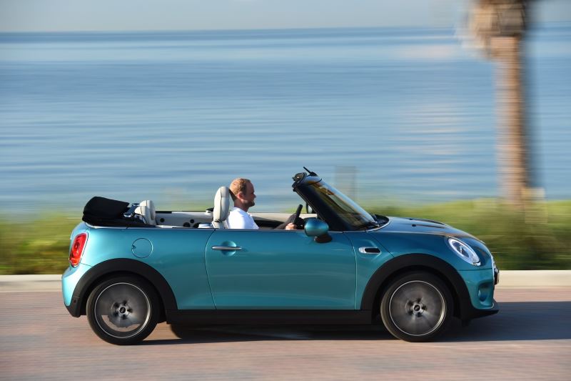 Крыша MINI Cabrio 2016 — матерчатый тент с автоматическим механизмом открывания и закрывания, а также с функцией приоткрывания. Кроме однотонного варианта есть еще один — в исполнении MINI Yours с уникальным вытканным изображением британского флага (Union Jack). Открывание и закрывание складного верха осуществляется в течение 18 секунд, функция доступна в движении на скорости до 30 км/ч. Составной частью концепции безопасности являются встроенные дуги безопасности для защиты при опрокидывании, выдвигающиеся автоматически в случае необходимости.