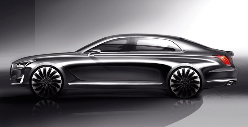 Компания Hyundai Motor представила первые компьютерные изображения премиального седана G90 (EQ900 — в Южной Корее), который станет первым представителем нового суббренда корейского автопроизводителя Genesis.