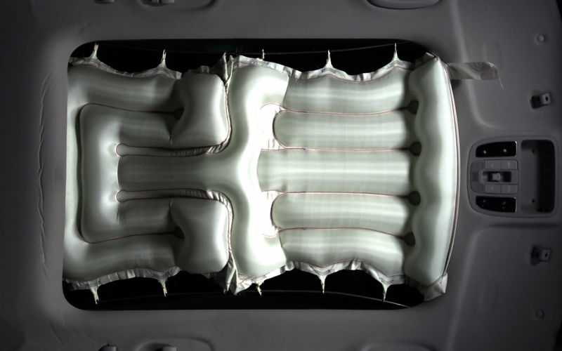 Зачем вообще нужен потолочной эйрбег? В компании утверждают, что он защитит пассажиров от выпадания наружу в случае если крыша будет разбита. С учетом того, что далеко не все автомобили сегодня комплектуются панорамной крышей, что их опрокидывание при ДТП происходит еще реже, а вываливающиеся через крышу люди – это вообще исключительный случай (их скорее придавит внутри), вряд ли данная опция будет сильно востребованной. Ну так никто и не говорит, что ее начнут ставить на автомобили прямо сейчас. Собственно, Hyundai лишь анонсирует изобретение, его практическое применение в составе серийных моделей еще только прорабатывается.