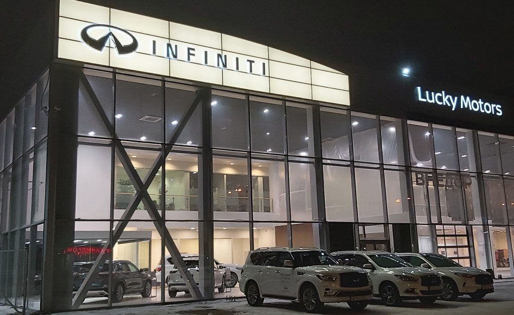 Дилерский центр «Infiniti Лаки Моторс» — первый ДЦ, который реализовал формат шоу-рума «три в одном». То есть, в одном автоцентре разместились сразу три шоу-рума. В одном представлены автомобили марки Nissan, во втором — Infiniti, в третьем — Datsun (при этом у каждого будет отдельный вход).