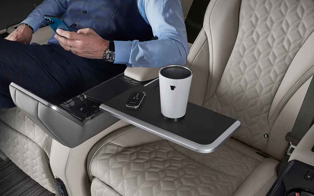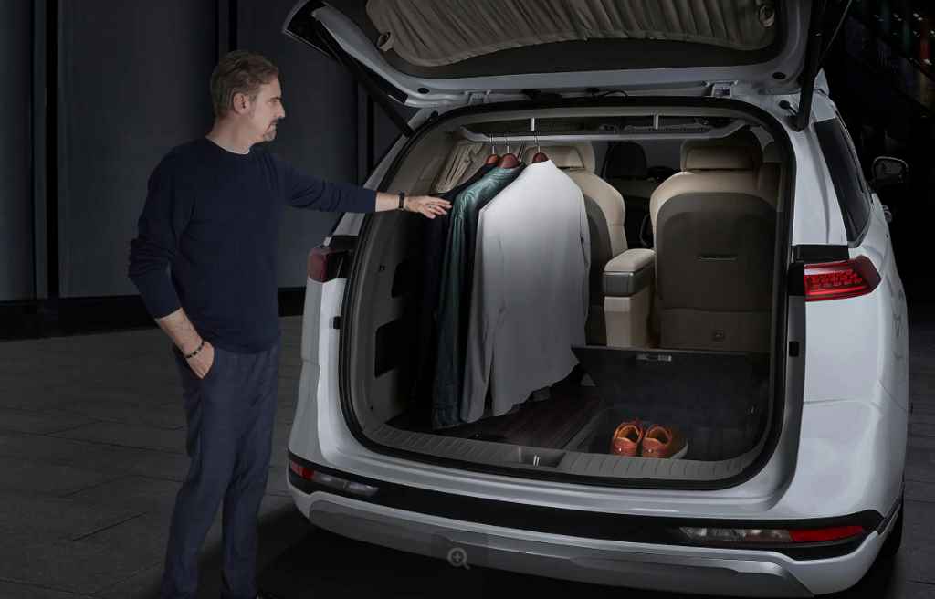 Пассажиры заднего ряда также обеспечены большим индивидуальным дисплеем с диагональю 21,5 дюйма, позволяющим им управлять функциями бортового мультимедиа. Для них же — боковые столики, дополнительные отсеки для хранения предметов, подстаканники, которые можно по желанию как подогревать, так и охлаждать. Здесь же — беспроводные зарядные устройства. А в багажнике представительского Kia Carnival установили вешалку с подсветкой и ящик для обуви.