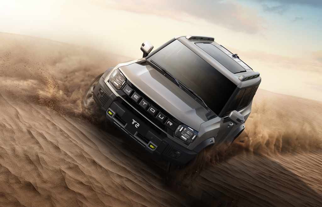 Китайцы утверждают, что Jetour T2, впервые представленный в 2023 году на автосалоне в Чэнду, рожден для того, чтобы преодолевать бездорожье. Выглядит он действительно брутально. Правда, в основе конструкции — несущий кузов, а не рама. Зато силовой агрегат — достаточно мощный 2-литровый 4-цилиндровый турбированный TGDI мощностью 245 л.с. (макс. крутящий момент — 375 Нм), работающий в паре с 7-ступенчатым «роботом» с двойным сцеплением. Плюс интеллектуальная система полного привода XWD от BorgWarner шестого поколения, которая сама следит за ситуацией и сама распределяет тягу между колесами.