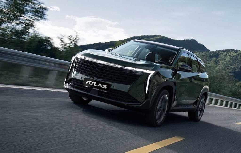 Geely Atlas в топовой версии Flagship Sport отличается 20-дюймовыми легкосплавными колесными дисками и двухцветной окраской кузова — некоторые элементы включая крышу окрашены в черный цвет. Кроссовер в максимальной комплектации также можно узнать по подсветке переднего логотипа марки, светодиодной линии дневных ходовых огней по всей ширине решетки радиатора, а также декоративной прозрачной накладке на селекторе КП.