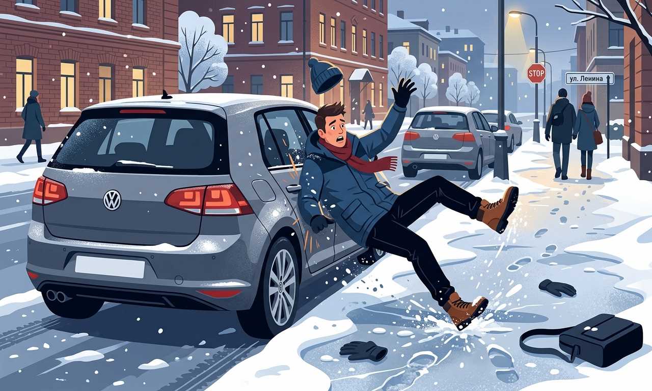Пешеход шёл по тротуару, никого не трогал… Неожиданно он поскользнулся и упал. Приземлился на припаркованный по всем правилам автомобиль, оставив на нём вмятину. Вопрос: кто будет оплачивать ремонт автомобиля?
